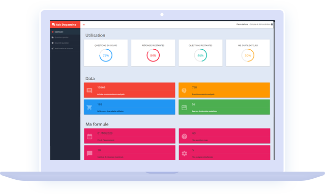 Posez simplement vos questions relatives à vos marchés, directement en ligne, et obtenez une réponse claire et argumentée en quelques jours et avec un rapport coût/valeur imbattable. Ask Dopamine vous accompagne dans toutes les questions stratégiques que vous vous posez sur votre business.
